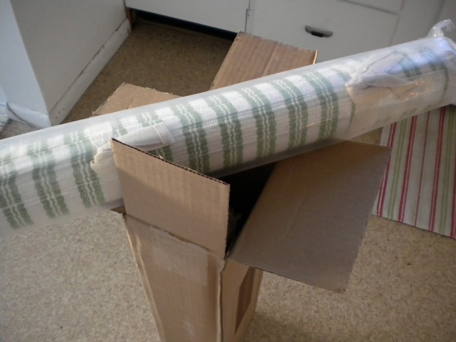 Your new rug is very pretty. It looks great in your kitchen. Don't you just love getting packages in the mail?